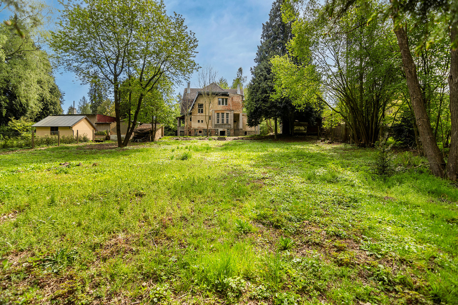 Villa an der Ausfahrt 29 der Autobahn D1 am Flussufer mit einem großen Grundstück von 3.659 m². Das Grundstück kann für den Bau von zwei weiteren Häusern mit Zugang zum Fluss geteilt werden. Möglichkeit einer Änderung des Bebauungsplans, Bau eines Wohnhauses. Diese Villa aus der Zeit der Ersten Republik steht nicht unter Denkmalschutz und befindet sich nicht in einem Überschwemmungsgebiet.