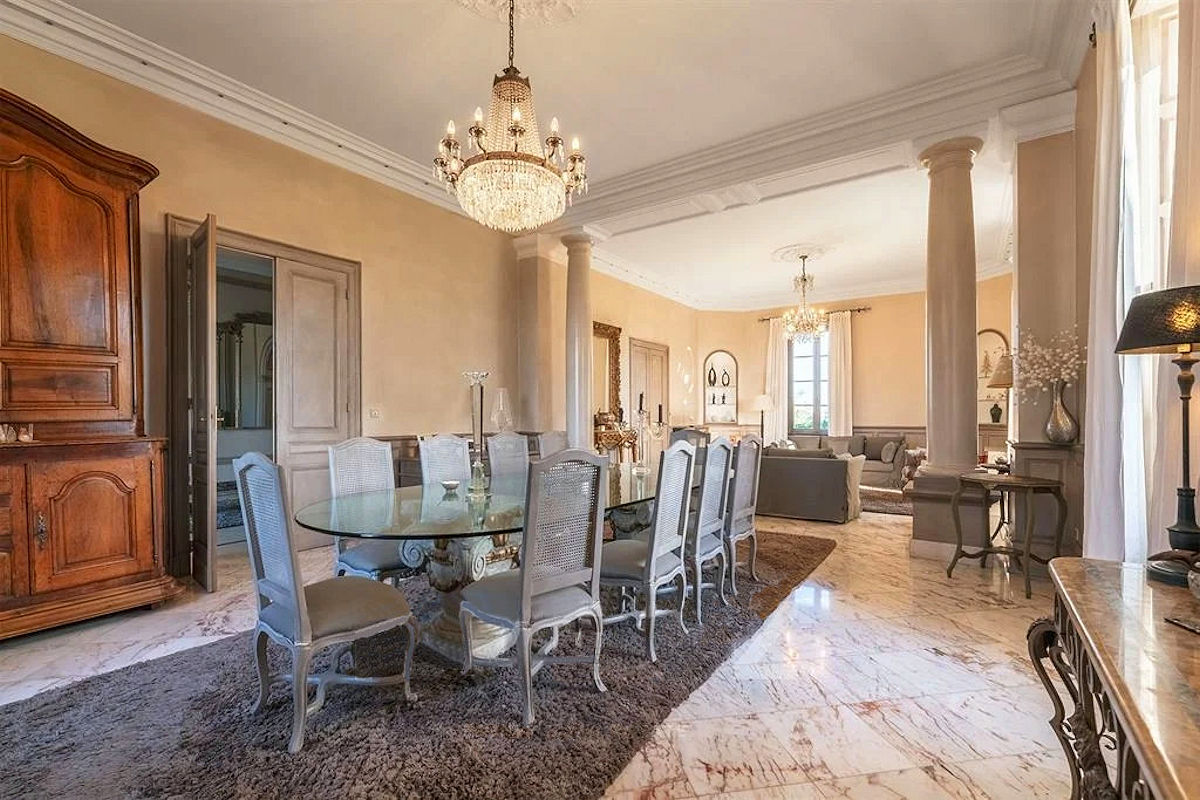 Na prodej zámek s vinařstvím v oblasti Bordeax na březích řeky Dordogne. Rozkládá se na 111 hektarech z nichž tvoří 80 hektarů vinice. Roční produkce odrůd Merlot, Cabernet Sauvignon, Cabernet Franc a Malbec kolísá mezi 200 až 400 tisíci lahvemi. Plocha budov s 24 ložnicemi a 9 koupelnami je 1300 m², z toho samotný zámek 620 m2, zbytek ve 3 samostatných objektech pro hosty a správcovském domě . Konírna má boxy pro 16 koní, je zde 7 hektarů ohrazených pastvin. Víno zraje a je stáčeno do lahví ve vlastních sklepích.
