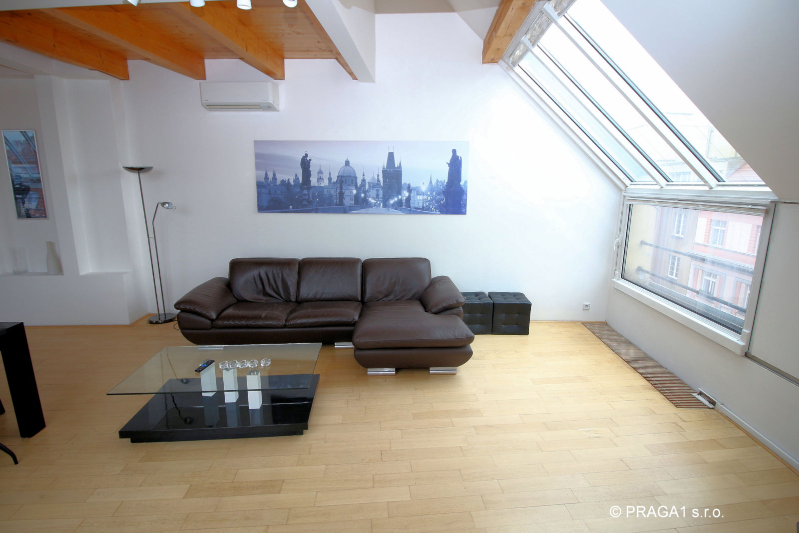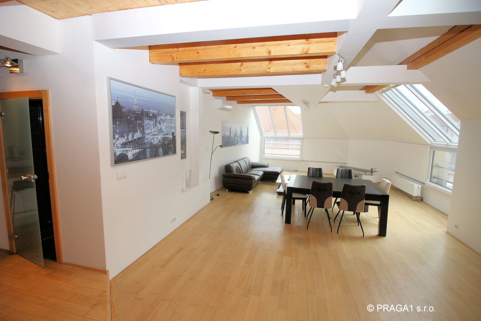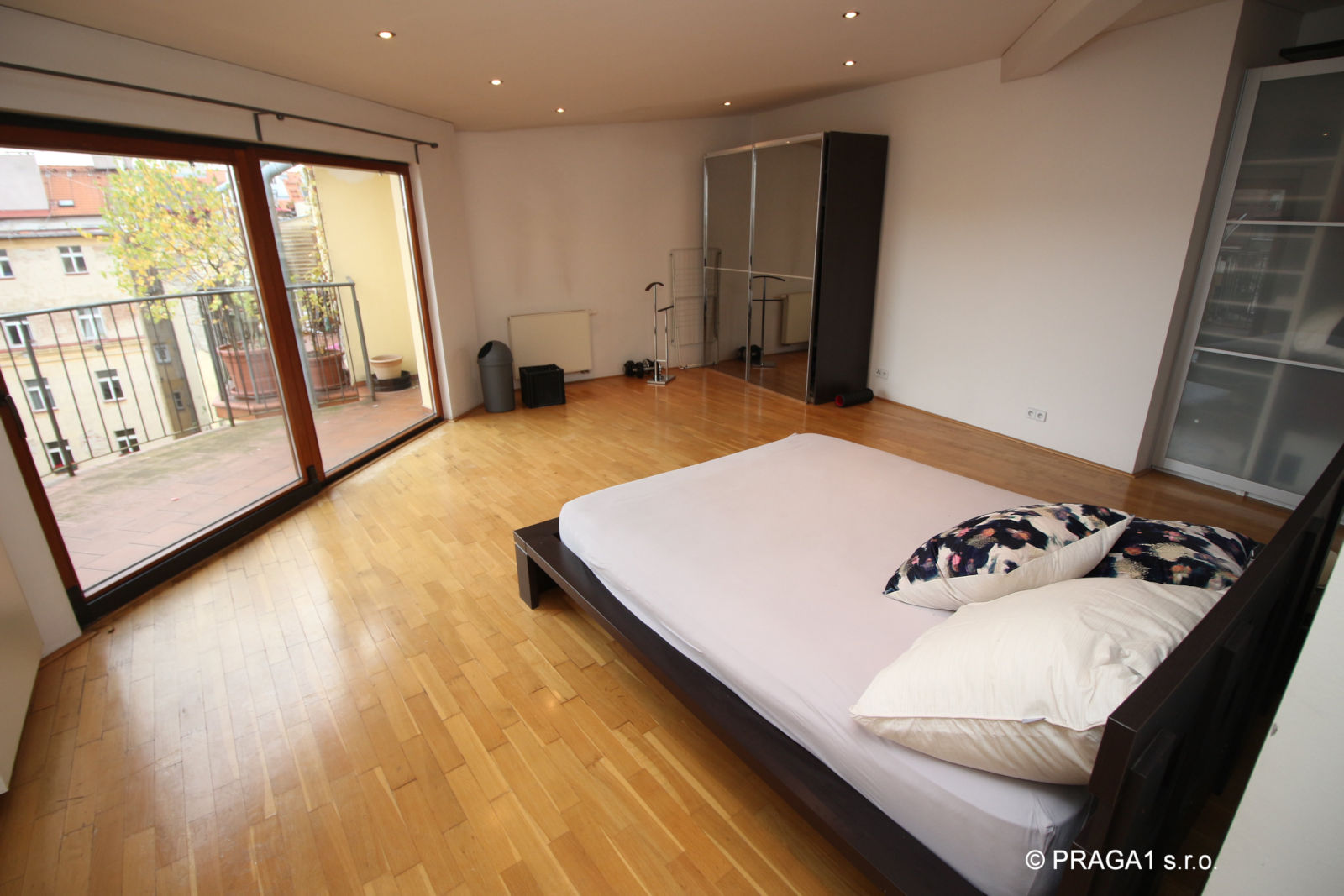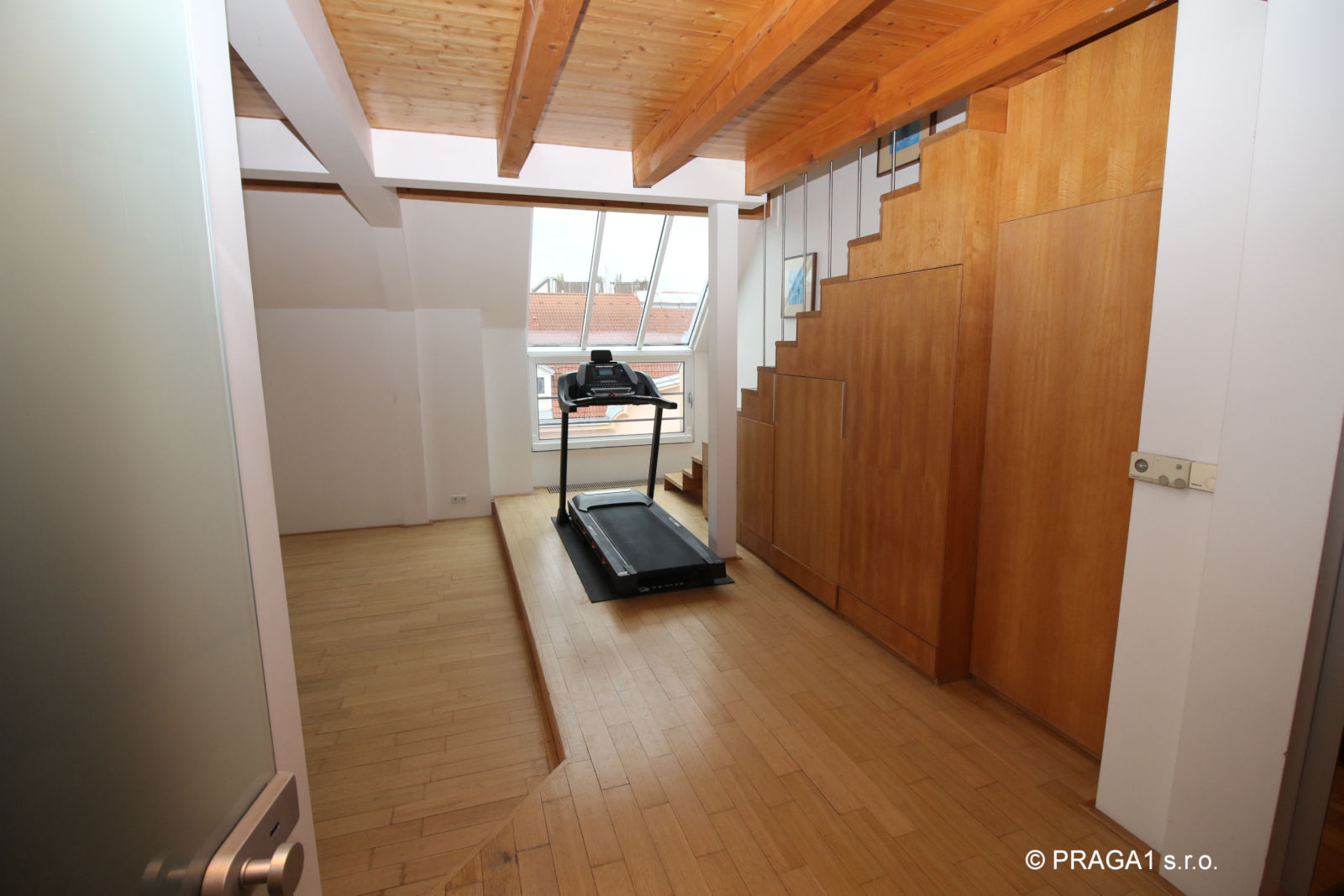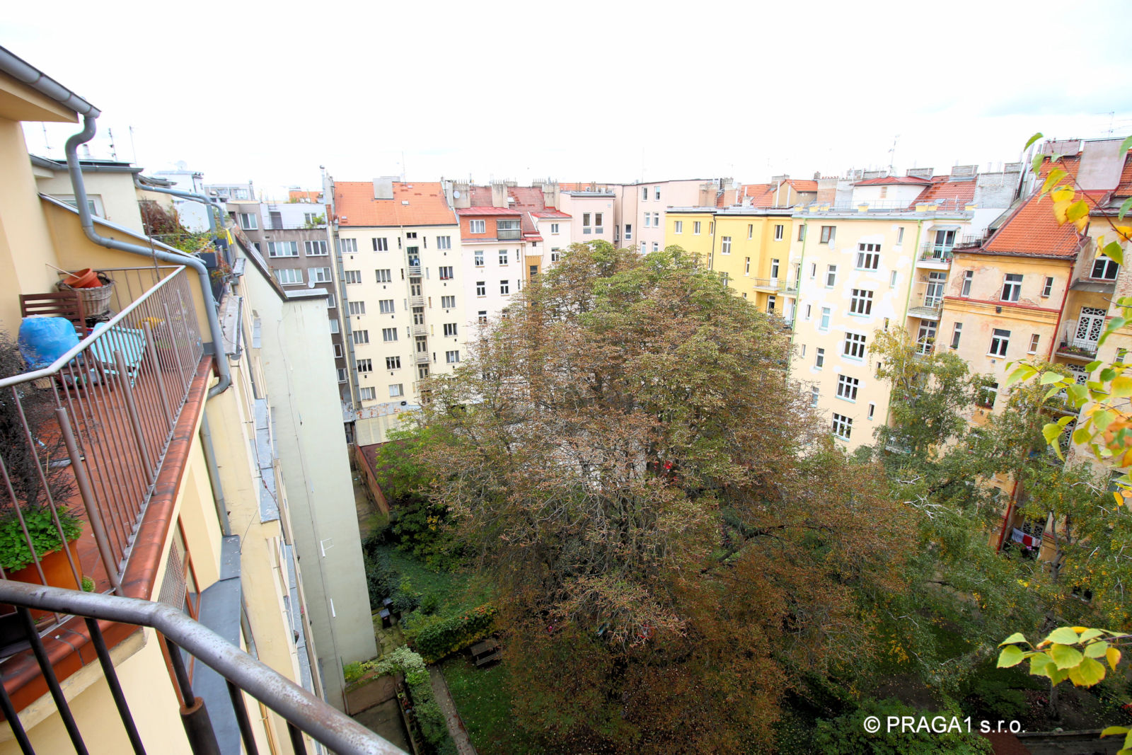 Wohnung mit einer Fläche von 120 m² in Prag-Vinohrady im 6. Stock mit Aufzug, das Haus liegt in einer ruhigen Straße mit viel Grün, die U-Bahn-Station Jiřího z Poděbrad ist 9 Minuten zu Fuß entfernt, die Straßenbahnhaltestelle 3 Minuten zu Fuß. Die Wohnung ist zweistöckig, im unteren Stockwerk befinden sich ein großes Wohnzimmer, eine Küche und ein WC mit Dusche. Im Obergeschoss befinden sich ein großes Schlafzimmer mit Zugang zum Balkon, der zum Innenhof hin ausgerichtet ist, ein großes Badezimmer mit Badewanne und Waschmaschine sowie ein zweites Schlafzimmer. Obwohl sich das Obergeschoss der Wohnung im Dachgeschoss befindet, gibt es hier hohe Decken und nur eine teilweise abgeschrägte Wand im kleineren Schlafzimmer. Die Wohnung kann so genutzt werden, wie sie ist, aus ästhetischen Gründen wäre jedoch eine Teilrenovierung sinnvoll.
